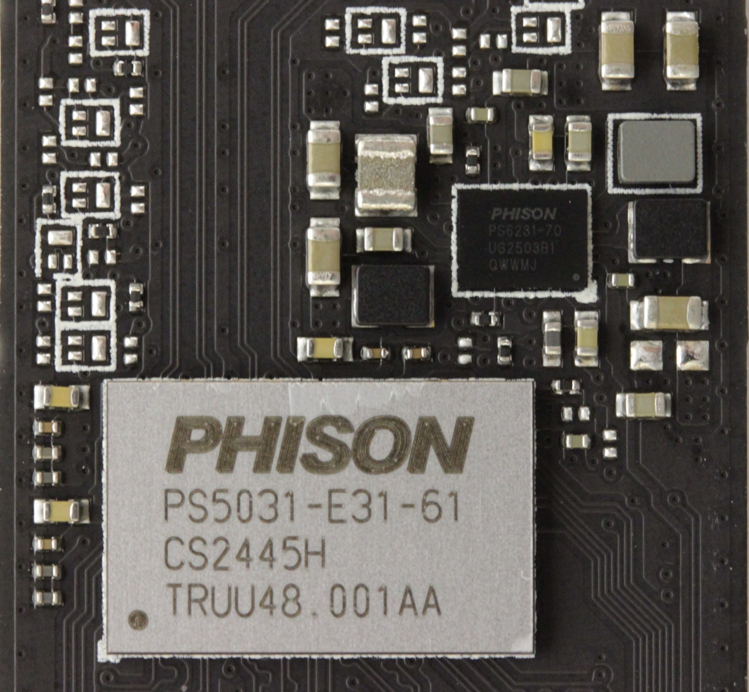 Основное отличие заключается в другой платформе, которая основана на безбуферном контроллере Phison PS5031-E31. В отличие от Phison PS5026-E26 он выполнен по более тонкому техпроцессу 7 нм, но это не значит, что он не нуждается в охлаждении. Чтобы накопитель заметно не нагревался, мне пришлось использовать штатный радиатор материнской платы ASUS ROG Strix Z890-A Gaming WIFI S, который хорошо справляется со своей задачей. Без него в простое температура быстро достигает 64°C, а с ним – сразу вдвое меньше. Соответственно, если в комплекте с устройством нет охлаждения, то это не означает, что оно не нужно. Основная проблема таких быстрых SSD – это высокий нагрев и, как следствие, троттлинг.