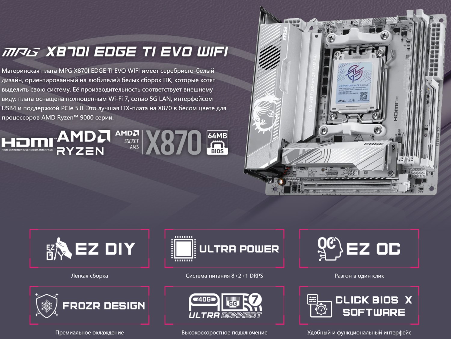 | Модель | MSI MPG X870I Edge TI EVO WIFI |