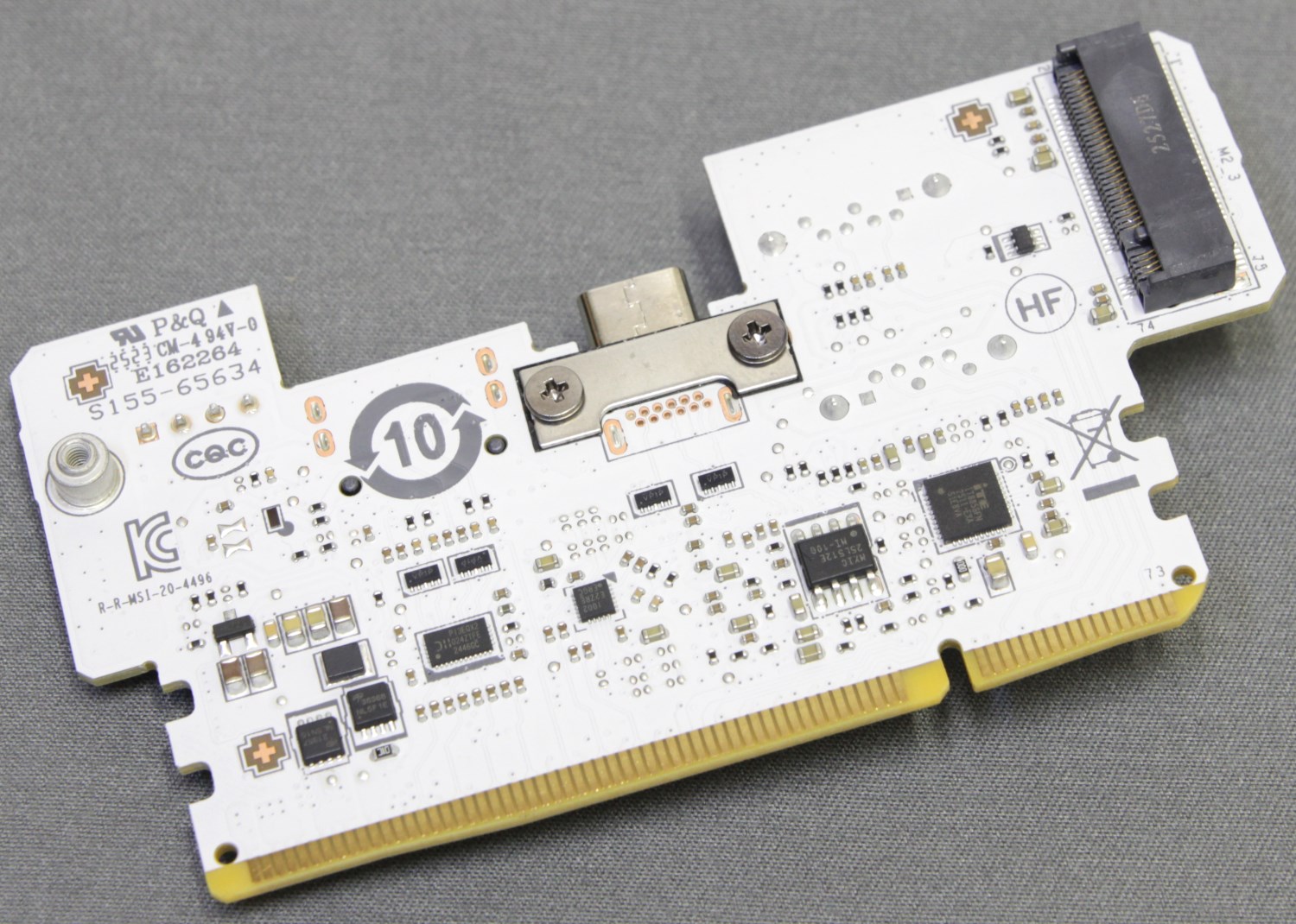 По правой стороне снизу находится специальный слот для установки платы 5 in 1 Xpander Card. На ней находится пару портов SATA, ещё один слот M.2, один порт USB 3.2, один порт USB 3.2 Gen2 и разъём для подключения спикерфона.
