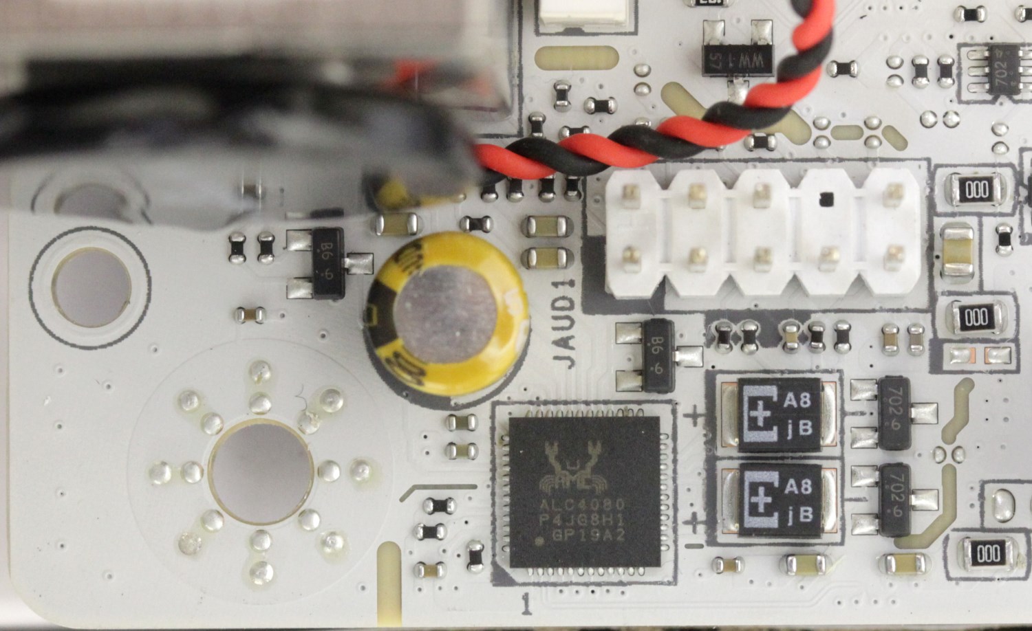 Левее и выше расположен разъём для подключения передней аудиопанели. Рядом можно заметить микросхему звукового кодека Realtek ALC4080.