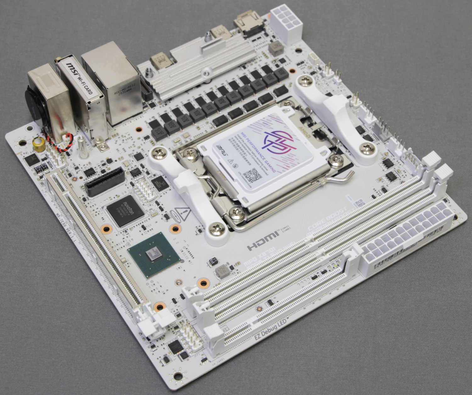 MSI MPG X870I Edge TI EVO WIFI позиционируется как геймерское решение с возможностью разгона для компактных сборок. Подсистема питания выглядит очень солидно. Однако следует помнить, что ограничителем в сборке может выступать система охлаждения процессора.
