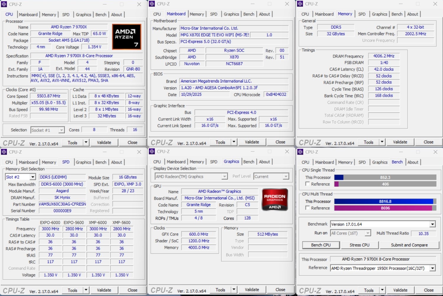 - Материнская плата: MSI MPG X870I Edge TI EVO WIFI, версия BIOS – A.20;