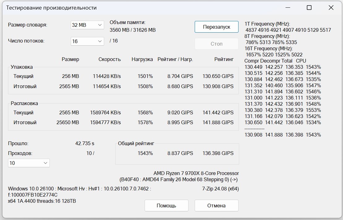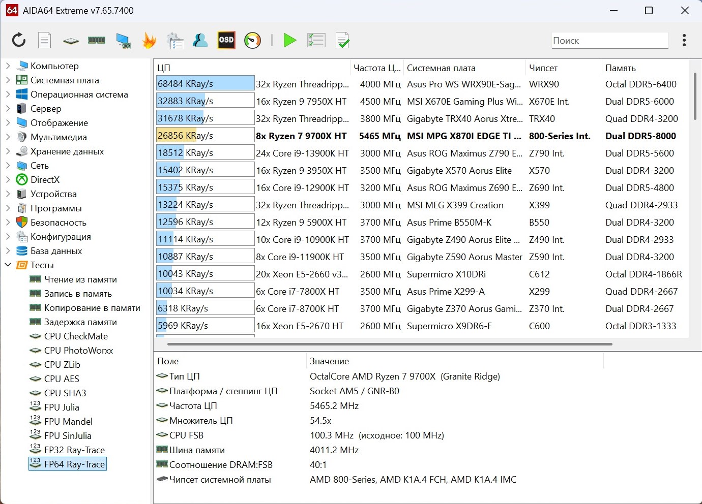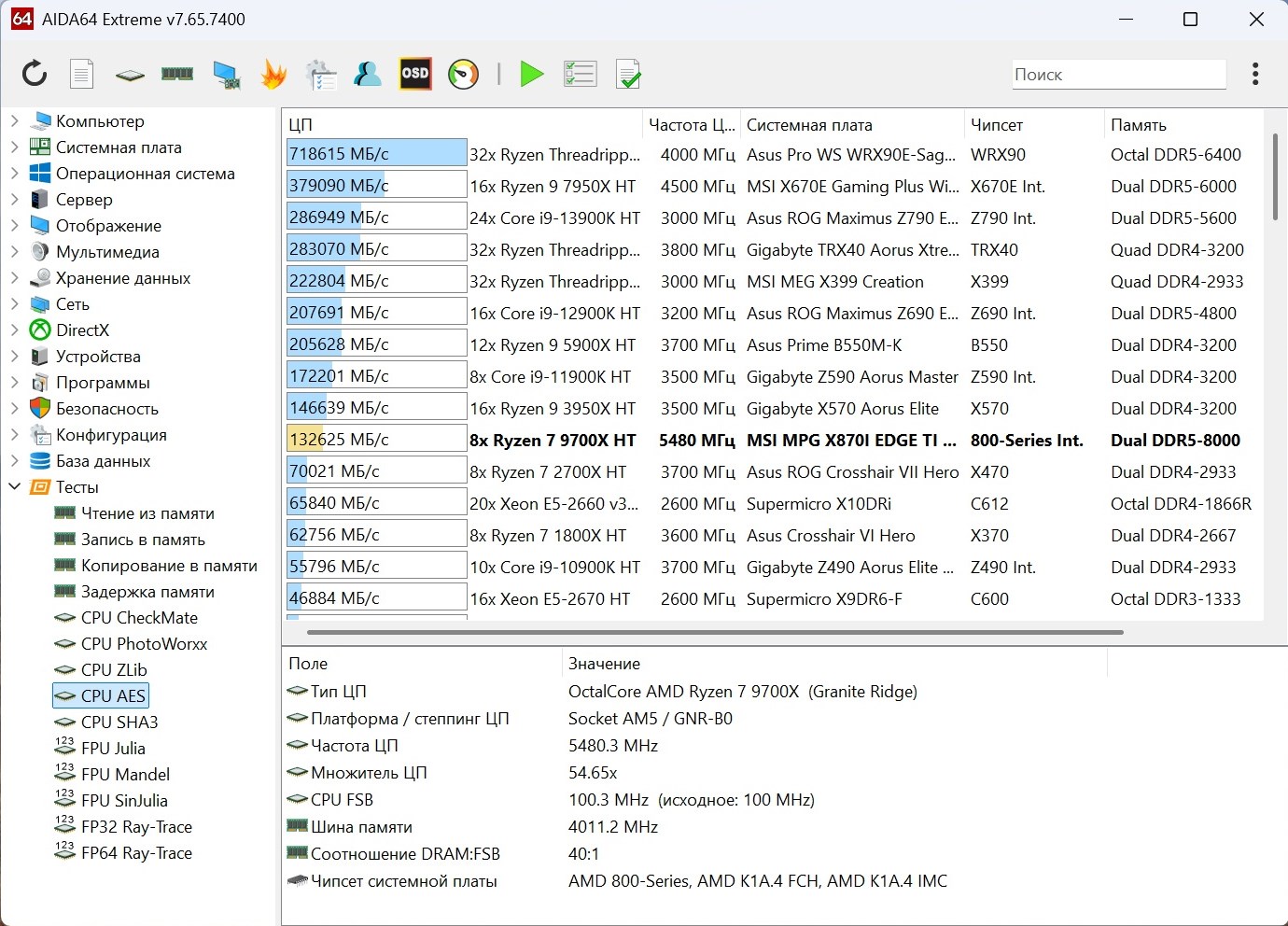Ещё я изначально немного разогнал систему. Просто в BIOS включил автоматический разгон и немного увеличил частоту памяти. Также проверил её работу в режиме DDR5-8000.