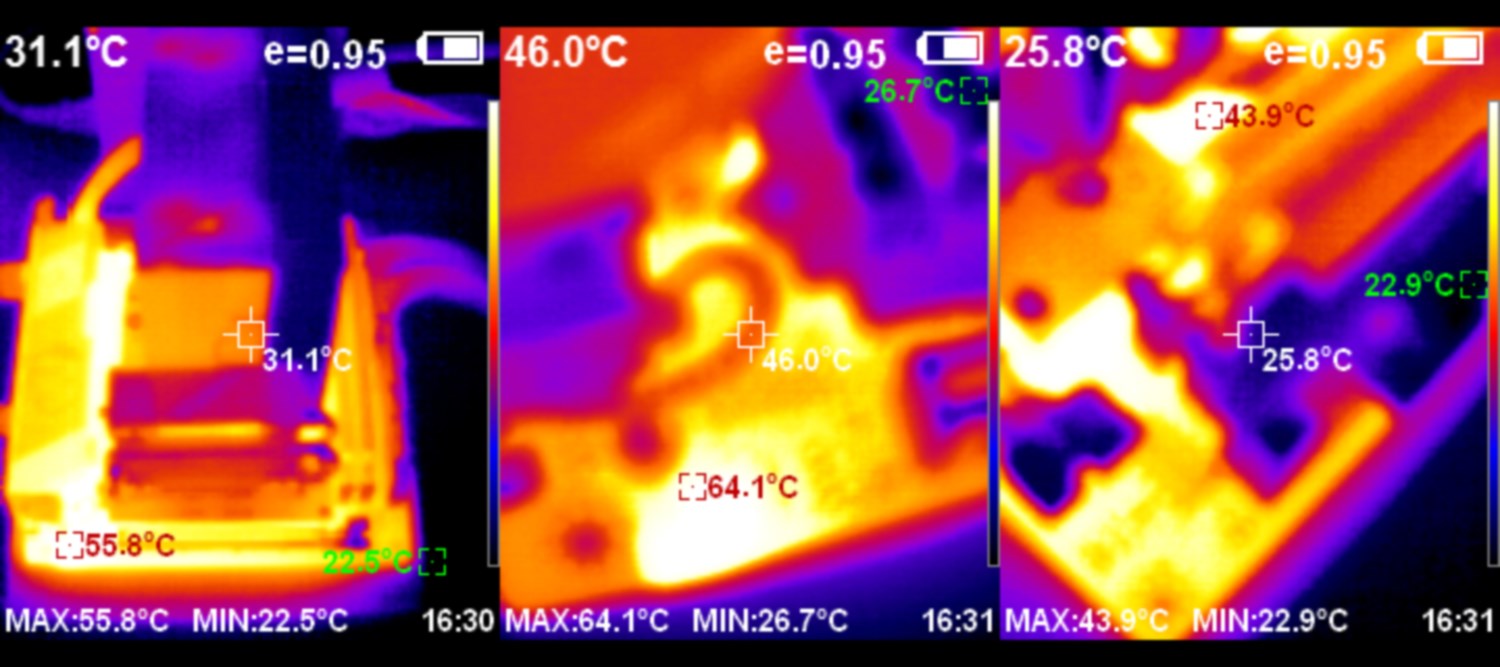 Далее я запустил всё тот же Prime95 и стал смотреть на устройство через тепловизор. Надо сказать, никакого криминала в температурах я не заметил.