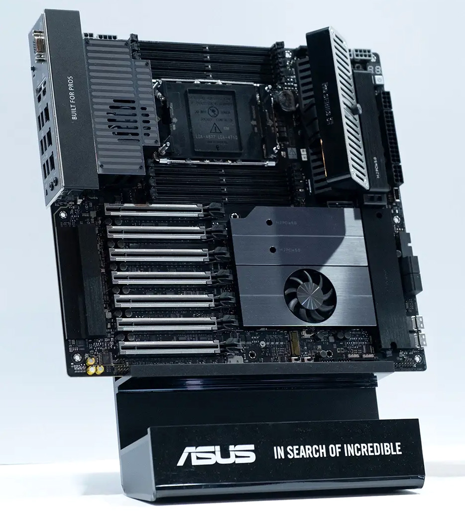 Процессоры нужно куда-то устанавливать, соответственно нужна системная плата, а с выбором плат на LGA 4677 совсем негусто, я бы даже сказал, что выбора как такового нет. Если на LGA 3647 можно было выбирать между ASUS ROG Dominus Extreme и EVGA SR-3 Dark (подразумеваются модели именно для энтузиастов-оверклокеров), то на LGA 4677 сначала нужно определиться, сколько каналов памяти планируется использовать: 4 либо 8, так как процессоры разных серий Xeon W-3400/3500 и W-2400/2500 имеют поддержку разного количества каналов памяти.