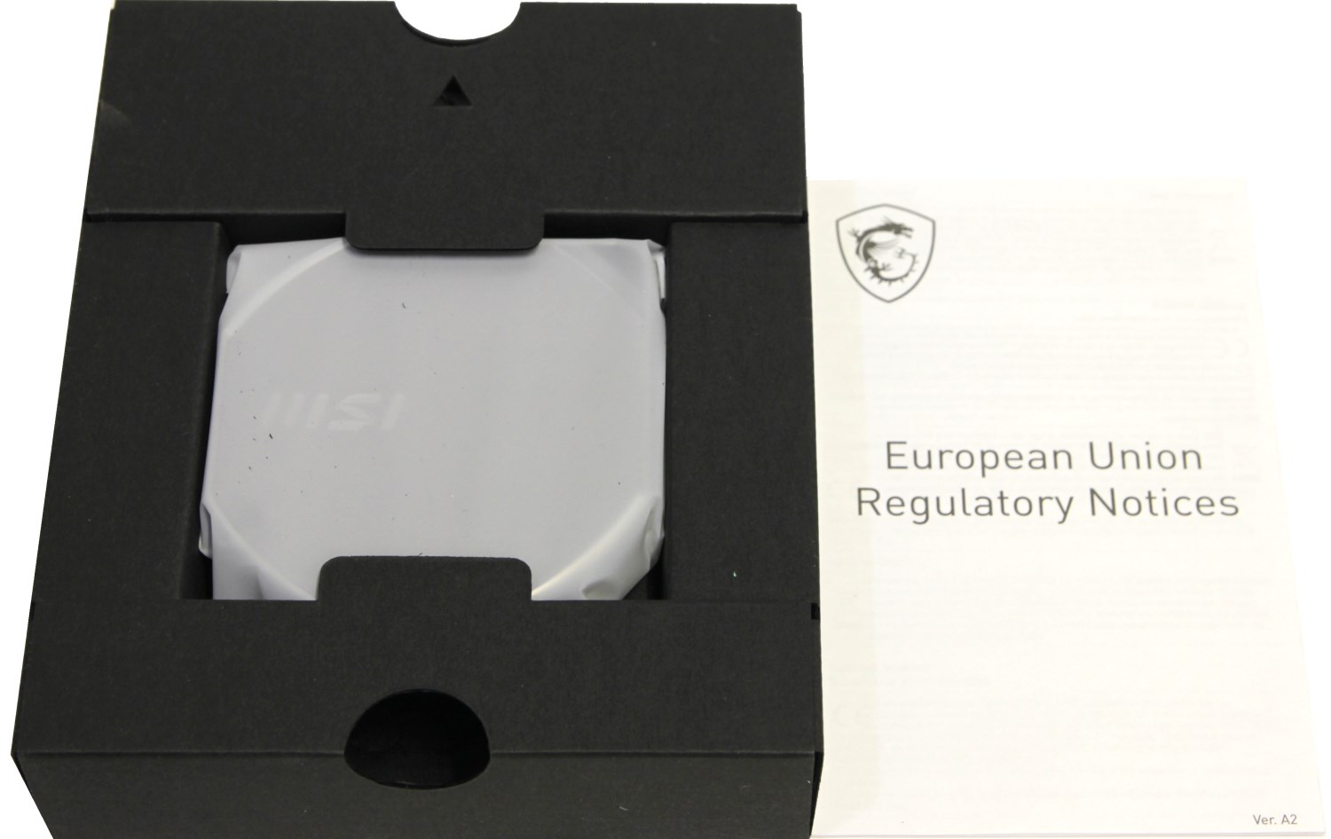 Внутри коробки находится чёрный картонный лоток. Сверху лежит инструкция, а в его недрах запрятан комплект поставки, включая само устройство.