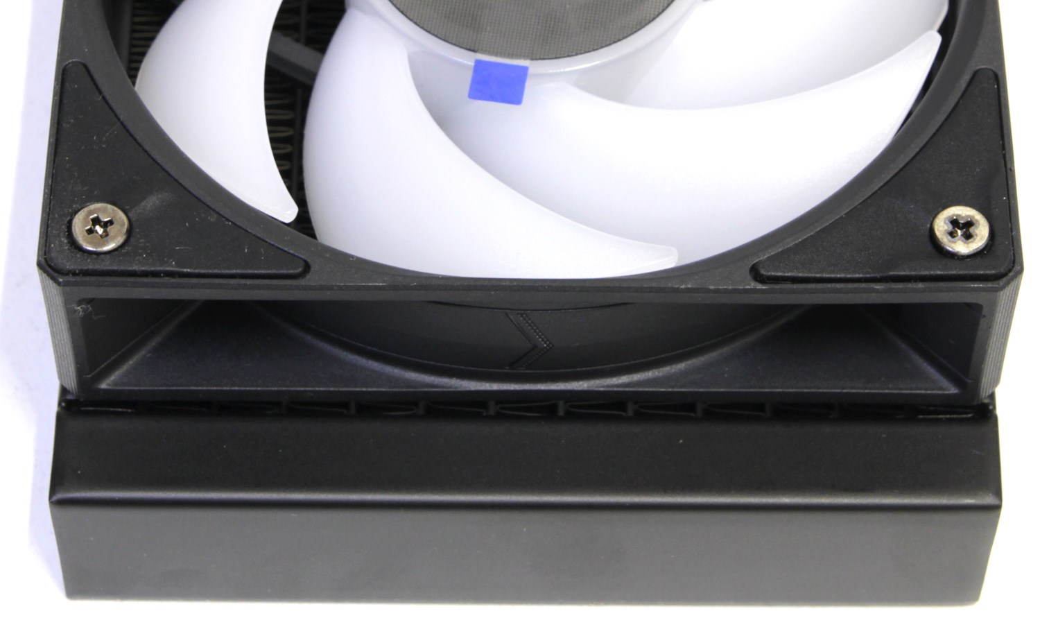 По углам вентиляторов есть мягкие резинки в цвет рамы. Они обеспечивают дополнительную защиту от вибрации. Лопасти немного скручены и их семь штук.