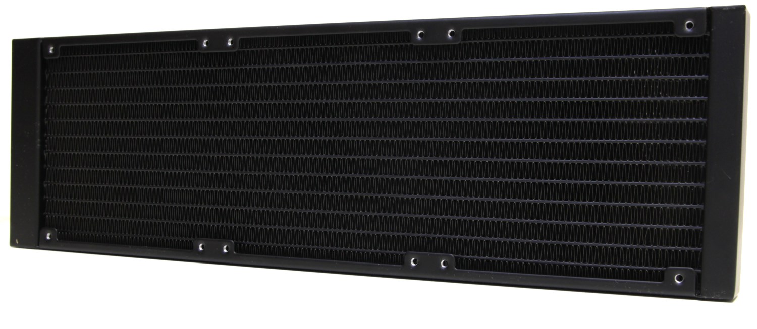 Габариты радиатора составляют 397 х 120 х 27 мм. Он изготовлен из алюминия и окрашен в белый цвет. В чёрной модификации он будет чёрным. Пластинки внутри расположены очень плотно, поэтому при сильном воздушном потоке тихо не будет, но зато должно отразиться на эффективности.
