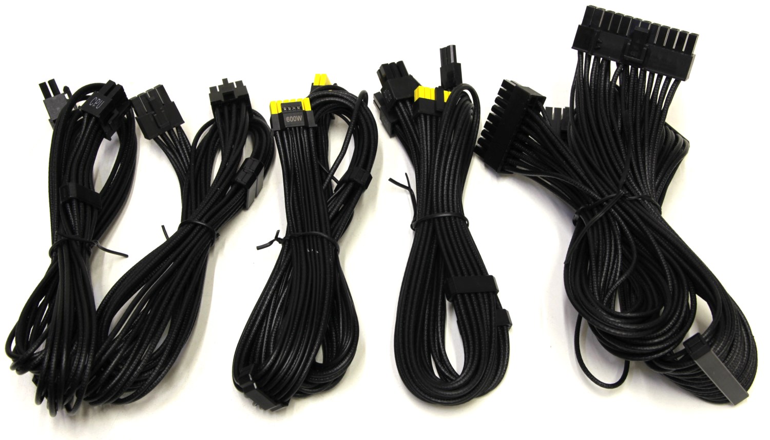 Все кабели достаточно длинные, но без фанатизма. Длина стандартная – 600-650 мм, а у периферийных SATA и Molex – 500 + 150 + 150 + 150 мм.
