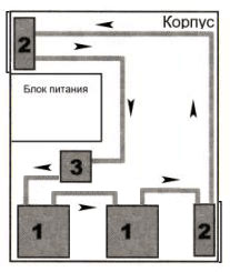 Одним из достоинств водных систем является то, что их можно каскадировать, т.е. соединять 2 или больше систем, суммируя их производительность. Если вас не отпугнёт высокая цена покупки нескольких систем, то вы сможете охладить даже самый мощный процессор и добиться рекордных результатов разгона. Если же вы решите установить систему в каскад, то можно воспользоваться следующей схемой.