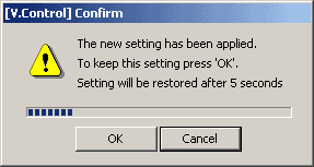 [Over Clock] управляет разгоном видеокарты. Значения можно выставить от 130 МГц до 230 Мгц, чего с лихвой хватает для всех известных карт 3dfx. Другие кнопки: [Apply] - применить изменение частоты, [Cancel] - сбросить бегунок на текущую частоту, [Default] - сбросить частоту на значение БИОСа по умолчанию, [apply settings at V.Control startup] во включенном состоянии применяет настройки частоты при запуске V.Control.