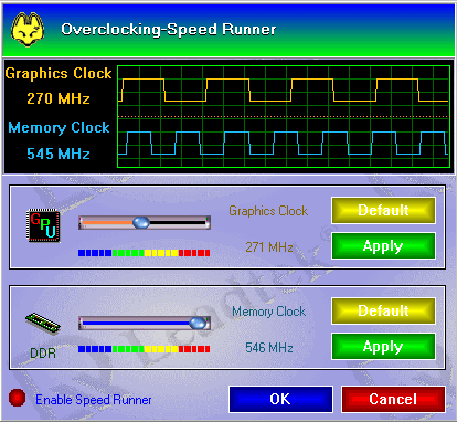 - На следующих частотах (270/545) карта работает БЫСТРЕЕ GF4MX440 в реальных приложениях (даже если последний разогнать до этих же частот). Эх, если бы погнать память и дальше, то возможно разогнанное ядро GF2 заработало бы в полную силу.