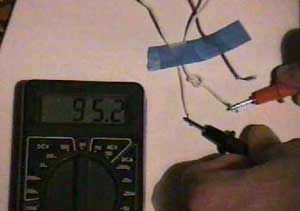 То есть считаем, что вы уже нашли стабилизатор питания и нашли нужные выводы на нём, потом подпаиваем к ним длинные провода и закрепляем их подальше от корпуса компьютера и смотрим, чтобы они не замкнули между собой. У одного моего друга во время подобного эксперимента один из проводов коротнуло на корпус, ему повезло, ничего не сгорело, но не думаю, что подобный опыт следует повторять. Их удобно прикрепить к обычному листку бумаги скотчем. Дальше меряем напряжение на R1 (между 1и 2 выводом - для трехвыводной микросхемы, и между Vsense и Adj – для пятивыводной) оно должно быть 1,25В, если оно отличается больше чем на 0,02В от этого, значит это не те выводы (ну или не та микросхема). Дальше мерим выходное напряжение, оно должно незначительно отличаться от напряжения питания ядра видеокарты (для GeForce2MX400 это 1.9В).