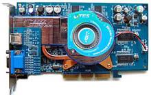 Интерфейс: 2х/4x/8х GPU: 250 МГц Память: 128 МБ DDR SDRAM, модули с временем цикла 4 нс (что соответствует частоте работы 300 (600) МГц), установленные с обеих сторон. Работает на частоте 256 (512) МГц Оснащение: VIVO, DVI Охлаждение: хороший круглый кулер, известный нам по Gainward Комплект поставки: руководство пользователя, диск с драйверами и утилитами, CyberLink PowerDirector (VIVO), набор из 2-х полных игр, переходник разветвитель VIVO, переходник DVI-to-d-Sub, а также фирменная металлическая очень стильная наклейка на корпус Разгоняемость: 250/513 -> 305/630 MГц, неплохой разгон по чипу, по памяти же хорошо Негативные особенности: отсутствуют радиаторы на памяти Позитивные особенности: хороший разгон, хорошее качество 2D, прекрасная комплектация Итог: Плата - копия эталонного дизайна. Установлена стандартная 4 нс память, которая показывает хороший (на уровне оппонентов) разгон. Также радует наличие VIVO и разумная цена.