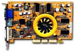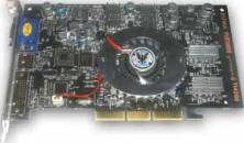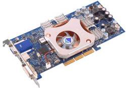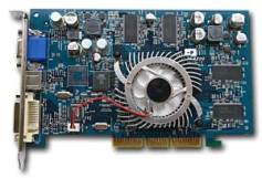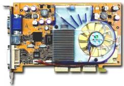 Интерфейс: 2х/4x/8х GPU: 250 МГц Память: 128 МБ DDR SDRAM, модули Samsung с временем цикла 4 нс (что соответствует частоте работы 250 (500) МГц), установленные с обеих сторон. Работает на частоте 256 (512) МГц Оснащение: Video-Out, DVI Охлаждение: установлен turbo-кулер Комплект поставки: руководство пользователя, диск с драйверами и утилитами, Cyberlink PowerDirector (для VIVO), переходник разветвитель для VIVO, переходник DVI-to-d-Sub Разгоняемость: 250/513 -> 310/630 MГц, неплохой для 4 нс памяти (отличный потенциал!) Негативные особенности: Позитивные особенности: бесшумный кулер, поддержка AGP 8x, хороший разгон, хорошее качество 2D, мощная система охлаждения Итог: Плата базируется на эталонном дизайне. Установлен бесшумный turbo-кулер, который обеспечивает хороший отвод тепла. Приемлемая цена. В общем хороший «середнячок», для тех, кто хочет сэкономить, но на производительности.