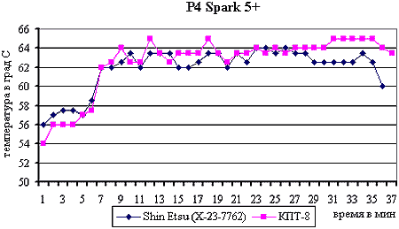 Явным лидером тестирования линейки кулеров от Thermaltake - P4 Spark,пока что выступает Spark 5+ с термоинтерфейсом Shin Etsu (X-23-7762). Температура на процессоре с его помощью не поднималась выше 64oС, да и работает он достаточно тихо, по сравнению с остальными. Проигравшим по-прежнему остаётся боксовый кулер от Intel.