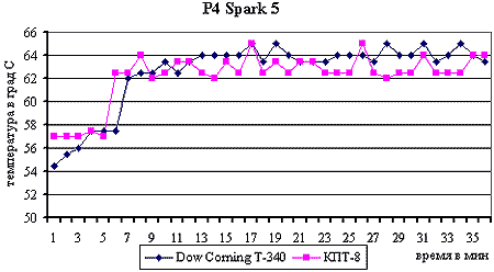 Никаких изменений в условия и процесс тестирования я не вносил. Система, помещённая в корпус IN-WIN IW-J508 с одним 80 мм вентилятором на задней панели, находилась в закрытом помещении, в котором поддерживалась постоянная температура 30oС. Система включалась, загружались Windows, и 5-6 минут система выдерживалась в таком состоянии. Этого времени вполне достаточно, чтобы температура внутри корпуса и снаружи стала одинаковой. Затем запускаю Burnp6 и Unreal одновременно и при помощи MBProbe контролирую изменение температуры на процессоре. Измерения проводились с интервалом 10 секунд, а потом делались выборки по одной минуте. Оба кулера тестировались сначала с термоинтерфейсом, установленным на них производителем, а затем с термопастой КПТ 8.