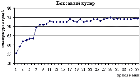 Для сравнения хочу предложить результаты, полученные при тестировании системы в тех же условиях, с боксовым кулером от Intel с термопастой КПТ 8.
