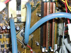 - вместо штатного радиатора на северный мост устанавливаем ватерблок с термоэлементом (элемент Пельтье с хладопроизводительностью порядка 7Вт);