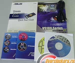 Эта карточка попала ко мне в "коробочном" исполнении, и к ней прилагались 7 CD с игрушками, демками, драйверами и утилитами, руководство для быстрого старта, в том числе и на русском языке, руководство пользователя на английском, переходник DVI - D-sub, кабель S-video - RCA.