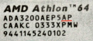 Отличия обнаруживаются только лишь в маркировке и в меньшем числе ножек на обратной стороне, поскольку процессоры Athlon 64 устанавливаются в материнские платы с Socket 754 и не совместимы с Socket 940 платами, предназначенными для CPU семейств Athlon 64 FX и Opteron.