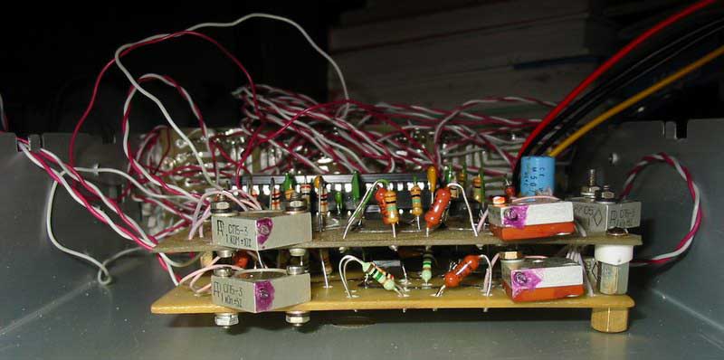 Фальш-панель можно и не изготавливать, если для крепления ЖКИ-панелей к заглушке использовать пластмассовые стойки, прикрепленные к заглушке с внутренней стороны при помощи какого-либо клея, например, на основе того же дихлорэтана. Печатные платы термометров крепятся непосредственно к шасси на латунных стойках.