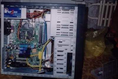 Для установки материнской платы Epox 8RDA3 пришлось вставить прилагавшуюся к ней заглушку для I/O разъёмов вместо той, что шла с корпусом. Благодаря достаточной длине проводов блока питания, есть возможность разместить их, не мешая другим устройствам. Один из проводов с молексами (разъемы для подключения ATA устройств и т.д., если кто не в курсе) был протянут под материнской платой для подключения HDD флопа и LCD дисплея.