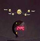 Так же на дисплее можно увидеть HDD led, индикатор текущего термодатчика и "скорость" кулеров. Всего "скоростей" 10, есть возможность остановить крыльчатку вообще, на дисплее в этом случае отсутствует какая-либо индикация (первая "скорость"). Нечетные скорости отображаются горением соответствующего количества диодов, а четные – их миганием. На скоростях со второй по седьмую слышимого шума воздуха нет. На скоростях выше он появляется, но не раздражает. При этом внутри корпуса температура редко превышает комнатную выше, чем на 2-3 градуса. (Показания двух ртутных термометров. Один - в комнате, другой - под видеокартой внутри кейса.)