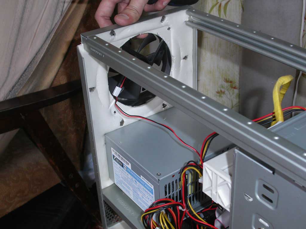Сейчас поведаю очередную историю. В отличие от корпуса моей подруги, мой Q500 немного побольше и более располагает для всяких экспериментов. Довольно долго у меня стояли фильтры на базе 80-ти мм-х вентиляторов, всё работало, пыли не было. Но был такой шум, что подруга просыпалась :-) Поэтому появилась закономерная идея замены вентиляторов на 120-ти мм-е.