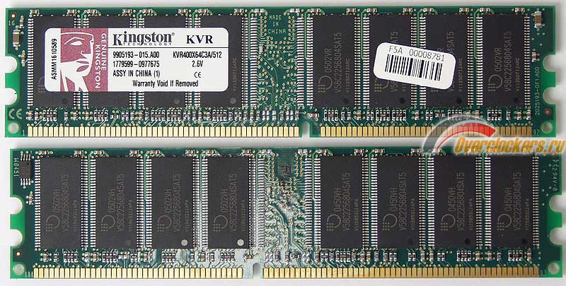 Наклейка сообщает рабочее напряжение памяти и позволяет узнать маркировку модулей – KVR400X64C3A/512: