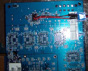 После вольтмода изрядно возросло тепловыделение стабилизаторов питания видеокарты, посему (как никак, карта не моя), дабы избежать неприятностей, было принято решение обдувать край платы 80мм вентилятором: