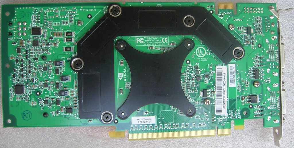 Был проведен следующий эксперимент: в систему по очереди устанавливались две видеокарты: старая S3 Trio 1Mb PCI и новая 7800GTX PCI-E. С установленной PCI картой температура чипсета составила 33°, а после установки 7800GTX она выросла до 40° (чипсет охлаждался водоблоком).