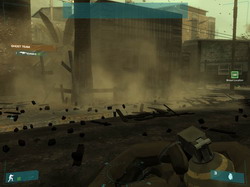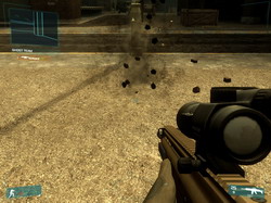 В третьей сцене отличия также достаточно очевидны. При использовании PhysX многочисленные куски земли, вырванные очередью, ведут себя практически так же, как они вели бы себя в реальном мире. Кроме того, облачко пыли имеет более разнообразную структуру и в целом также выглядит более реалистично, нежели в режиме без поддержки PPU Ageia.