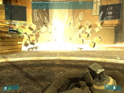 То же самое можно сказать про разрушение кучи ящиков в пятой сцене. Обратите внимание – многие объекты на скриношоте, полученном при использовании Ageia PhysX, имеют своеобразные "тени", напоминающие эффект motion blur.