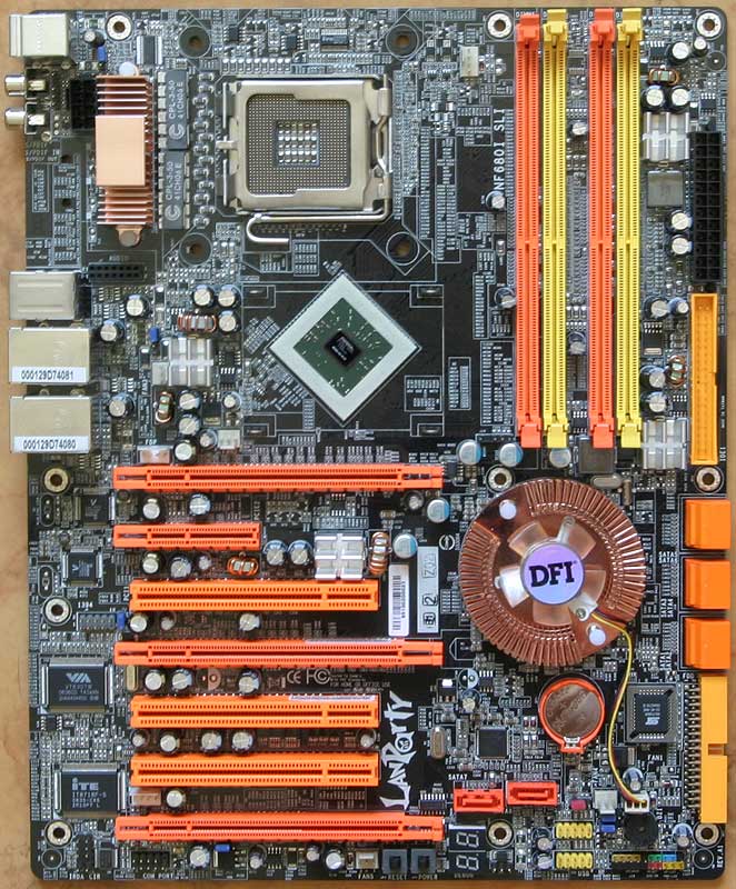 Не обратить на них внимание было просто невозможно: яркая упаковка, светящиеся в ультрафиолете кабели и разъёмы на плате, богатая комплектность, включающая наклейки, модульный блок для передней панели и сумку для переноски компьютера. Но не только оформлением и комплектностью выделялись материнские платы DFI, вскоре они обрели славу идеальных оверклокерских плат благодаря большому количеству и гибкости настроек, богатым возможностям для разгона процессоров.