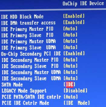 В отличие от младшей сестры у платы Biostar TP35D3-A7 Deluxe имеется возможность выбора режима работы SATA-дисков.