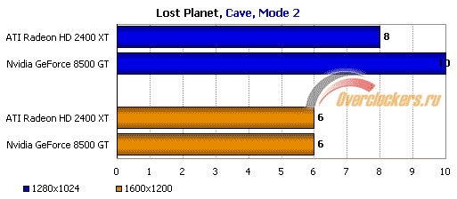 Как и в случае с GeForce 8600, его младший собрат GeForce 8500 GT не умеет работать с максимальными настройками качества в игре Lost Planet.
