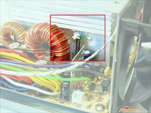 Ну и последний тест перед "битвой титанов" - утихомириваем вентиляторы и смотрим, не выползут ли температуры за допустимые рамки. Процедура очень простая: вскрываем блок питания, вооружаемся шлицевой отверткой и отковыриваем от радиатора управляющий термистор схемы термоконтроля.