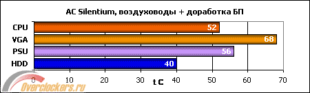Температурный режим большинства периферийных компонентов доработка, как и ожидалось, не затронула, зато температура процессора рухнула аж на 7 градусов! Так что при покупке корпуса третьей ревизии не забывайте заказывать эти самые опциональные воздуховоды - они того стоят.