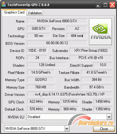 - XFX GeForce 8800 GTX GDDR3 768 Мб / 384 Бит, @621/2030 МГц.