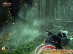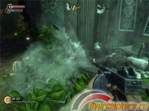 Кроме того, одним из главных преимуществ от использования DirectX 10 является более аккуратный блендинг таких эффектов, как дым, туман и огонь с моделями объектов: в режиме DX10 четкие границы между эффектом и объектом отсутствуют, в то время, как режиме DX9 они отчетливо видны. Это не слишком влияет на качество погружения в игровой мир BioShock в целом, но временами может быть заметно.