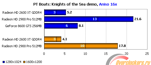 Результаты ATI Radeon HD 2600 XT GDDR4 говорят сами за себя – карта определённо не подойдет для игры в PT Boats.
