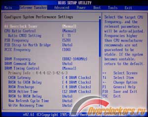 Напряжения CPU PLL Voltage и FSB Termination Voltage в данном случае повышать не пришлось, они были установлены в штатные значения 1.5 и 1.2 В соответственно. Память тактовалась с использованием делителя 1:1 на частоте 1040 МГц с задержками 4-4-4-12.