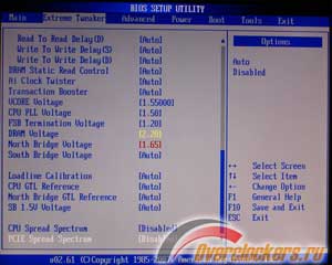 Все основные интересующие оверклокеров опции сосредоточены в разделе Extreme Tweaker. Здесь имеется возможность для ручной установки множителя процессора, частоты FSB в пределах от 100 до 800 МГц, частоты шины PCI Express и частоты FSB Strap. Альтернативный автоматический способ конфигурирования частоты FSB заключается в использовании EPP/XMP (если используется память с поддержкой оверклокерских профилей в SPD), при его активации плата сама подбирает оптимальную частоту системной шины.