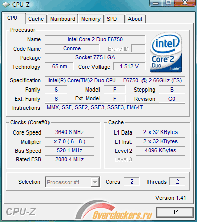 Максимальный же результат разгона удалось получить при напряжении на северном мосту, равном 1.65 В. При таких настройках плата запускалась и устойчиво работала на частоте FSB, равной 520 МГц.