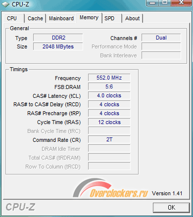Напряжение на северном мосту в этом случае было повышено до 1.55 В, настройки CPU PLL Voltage, FSB Termination Voltage и CPU GTL Reference были установлены в их номинальные значения. Память в данной конфигурации работала на частоте 1105 МГц с задержками 4-4-4-12, то есть использовался повышающий делитель FSB:Mem, равный 5:6.