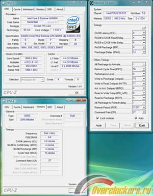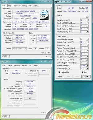 Для тестов в данном случае мы решили установить частоту FSB в 450 МГц. При этом использовался тот же самый процессор Core 2 Extreme X6850, но разогнанный до частоты 3.6 ГГц, которая выставлялась как 8 x 450 МГц. Для достижения полной стабильности напряжение питания процессора повышалось до 1.45 В. Используемая DDR2 память при этом работала на частоте 1080 МГц с таймингами, установленными по схеме 4-4-4-12.