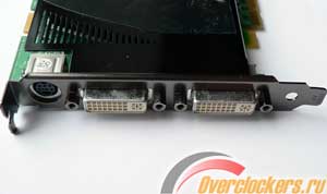 Видеокарта оснащена PCI-Express интерфейсом (версии 2.0), парой dual link DVI и одним TV выходом: