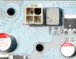 В настоящее время лишь на материнских платах Gigabyte GA-P35-DS3L и GA-P35-S3L используется упрощённая схема питания процессора, все остальные в серии S3 имеют шестифазную схему питания, а платы с индексом P и двумя разъёмами PCI Express x16 вдобавок оснащены восьмиконтактными разъёмами ATX12V. Обратите внимание на предыдущие фото. В разъёме ATX12V два контакта отведены под "землю", а два оставшихся под 12 В, но видно, что питание в основном (или даже полностью) шло лишь по одному из них, который и расплавился. Бракованная плата может встретиться у любого производителя, хочется верить, что это дефект конкретного экземпляра платы, а не всех GA-P35-DS3L и GA-P35-S3L или даже всей серии.