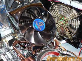 На платформе с двухъядерным процессором Intel новый кулер от Gigabyte проявил себя с самой лучшей стороны. Так, при его использовании процессор Core 2 Duo E6750 степпинга G0 внутри корпуса системного блока удалось разогнать до частоты в 3.8 ГГц при увеличении напряжения в BIOS материнской платы с номинального в 1.35 В до 1.625 В: